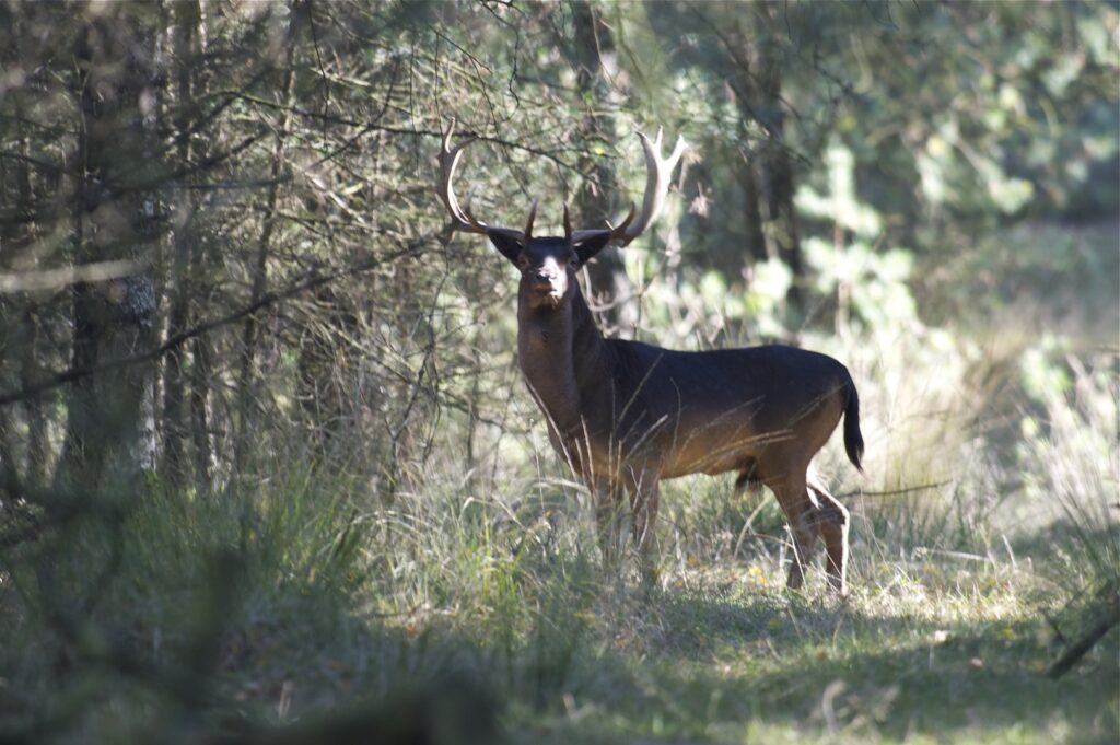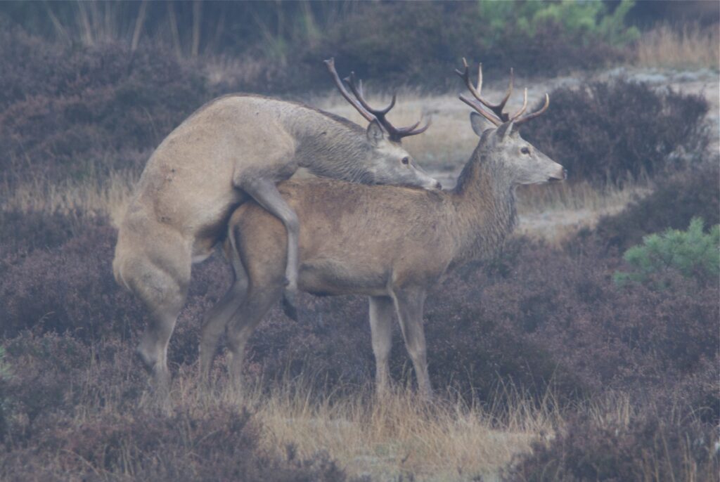 De bronst (paartijd) speelt zich af van half oktober tot half november. De oudere herten gaan elk jaar naar dezelfde plek in het bos om hun bronstplaats in te nemen. De bronstplaats bestaat uit een ondiepe kuil die wordt besprenkeld met urine. Door zacht kirren, snurken en gorgelen geeft hij de plaats aan waar hij de hinden opwacht. De hinden bezoeken meerdere herten en kiezen zelf welk hert voor het nageslacht mag zorgen. Na de bevruchting verlaat de hinde de bronstplaats. De draagtijd is zo’n 8 maanden.