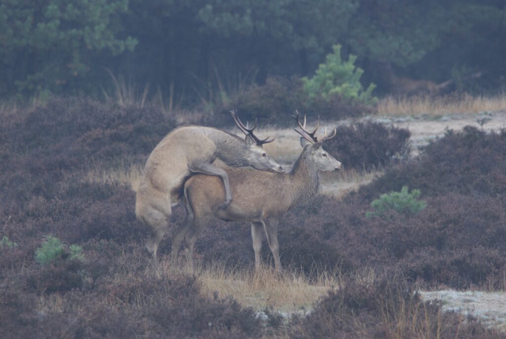 De bronst (paartijd) van de edelherten is een imposant spektakel en speelt zich af van half september tot half oktober. Tegen de bronst vallen de mannelijke roedels uiteen. Bij de mannelijke dieren groeien aan de hals lange donkere haren (bronstmanen). Het hert zoekt de bronstplaats op en vormt een harem. Een bronstplaats is een natte, modderige plek die ze besprenkelen met urine en sperma. Hierin wentelen ze zich en bedekt met een laagje modder proberen ze de hinden te imponeren. De meeste bronstactiviteit valt in de nachtelijke en vroege ochtenduren. Het normaal zwijgzame hert laat door te burlen (diep geloei) goed van zich horen. Hiermee laat hij weten dat het zijn territorium is en probeert hij rivalen op afstand te houden. Lukt dat niet, dan kunnen er gevechten ontstaan. Tijdens zo’n gevecht proberen ze elkaar met het gewei weg te drukken. Het gaat er soms zo fel aan toe dat geweien afbreken, of een hert zelfs dodelijk wordt verwond. Het sterkste hert op de bronstplaats wordt plaatshert genoemd. Hij paart met alle bronstige hinden uit zijn harem. De hinde is slechts één dag bronstig, en met haar geur lokt ze het hert. Hij zal haar volgen en als de hinde paringsbereid is, zal het hert haar beslaan. Na de bronst zijn de herten vaak uitgeput, niet alleen door de inspanningen, maar ook omdat ze in die weken vrijwel geen voedsel tot zich nemen. Het gewichtsverlies kan wel oplopen tot 30%.